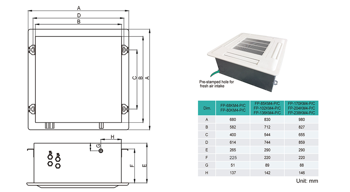 Suitable for hot/chilled water system, ceiling installation;